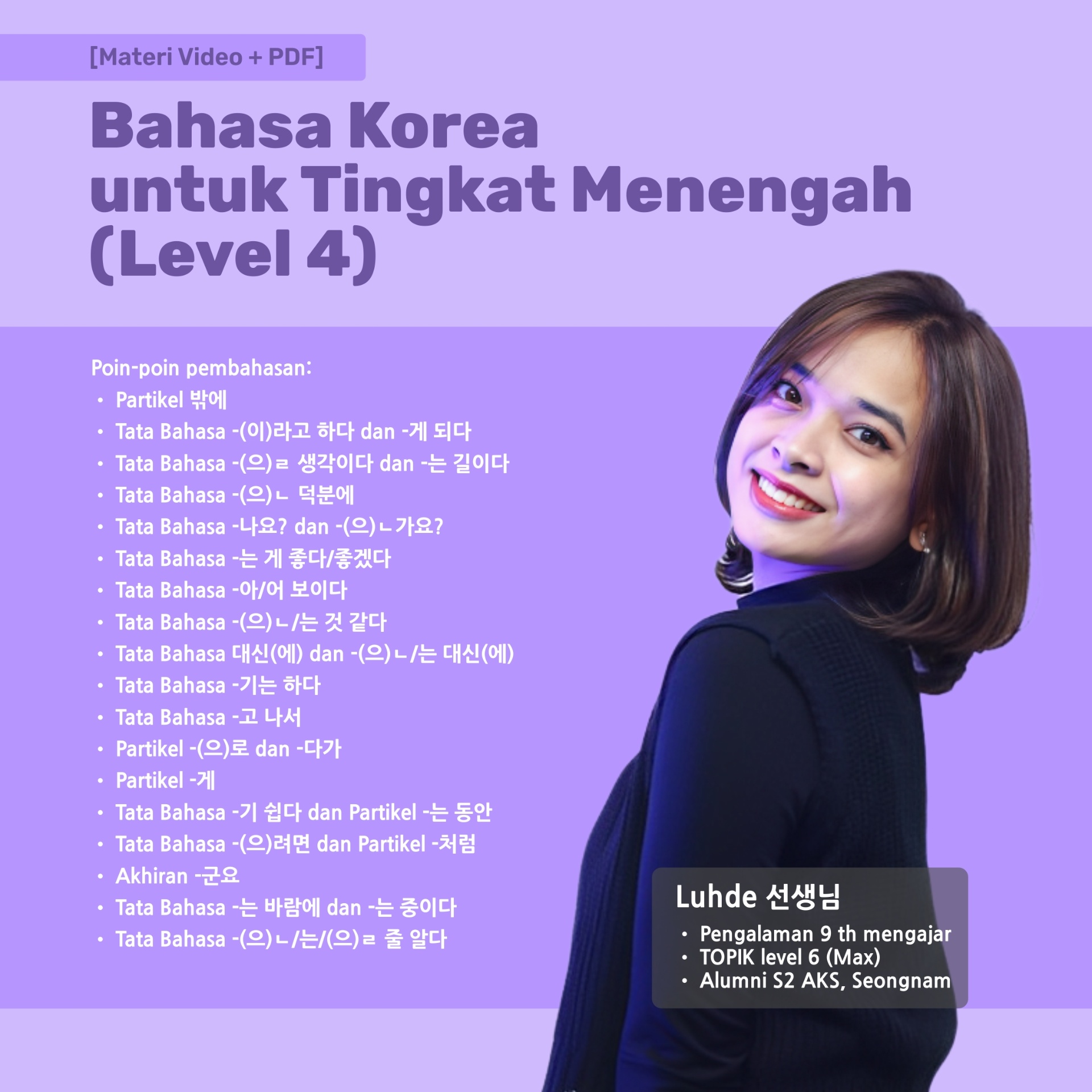 ![[Materi Video + PDF] Bahasa Korea untuk Level 4 (Tingkat Menengah)](https://media.mayar.id/images/2de1c74d-66c3-4e7b-ba6d-340d8ab88bc2.jpeg)