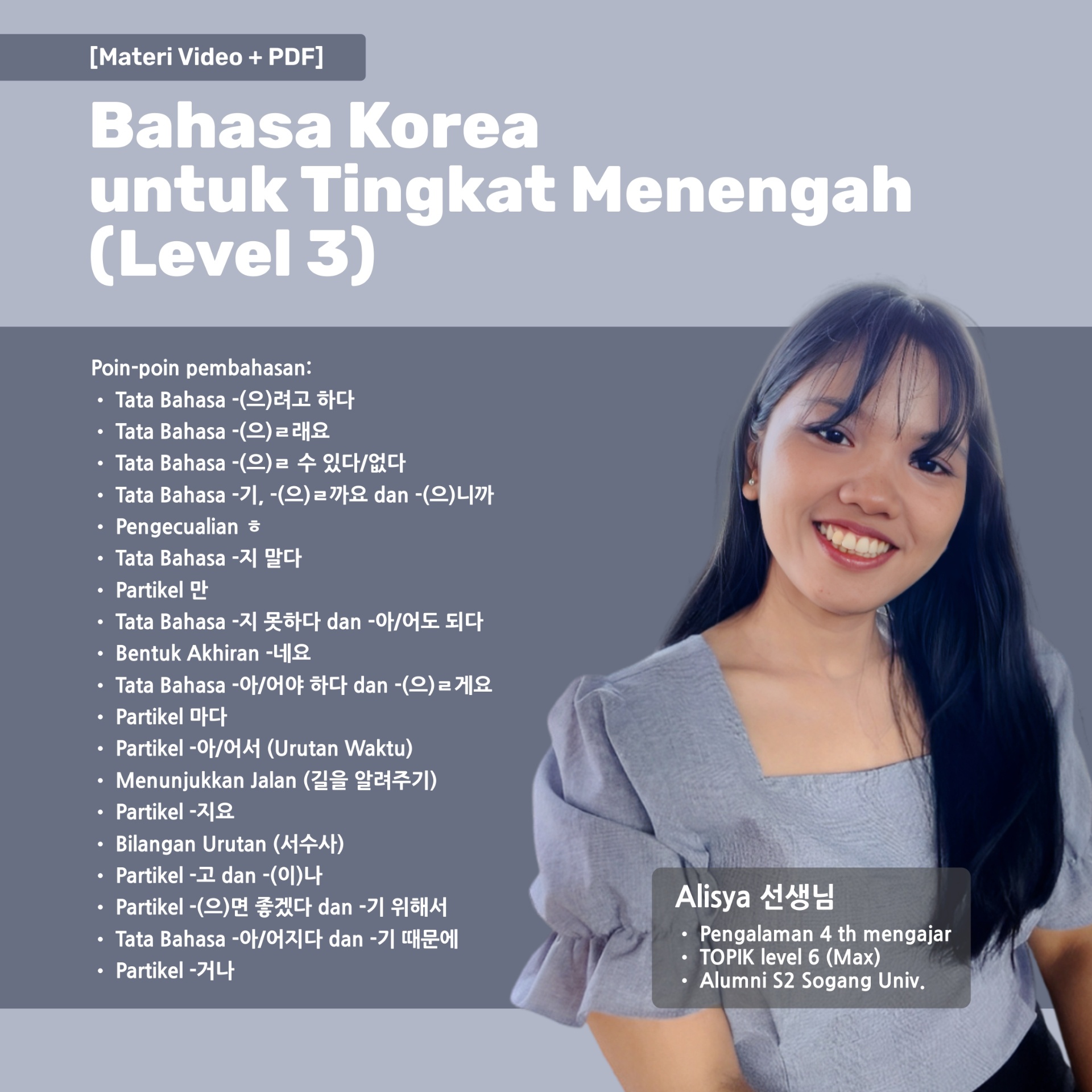 [Materi Video + PDF] Bahasa Korea untuk Level 3 (Tingkat Menengah)